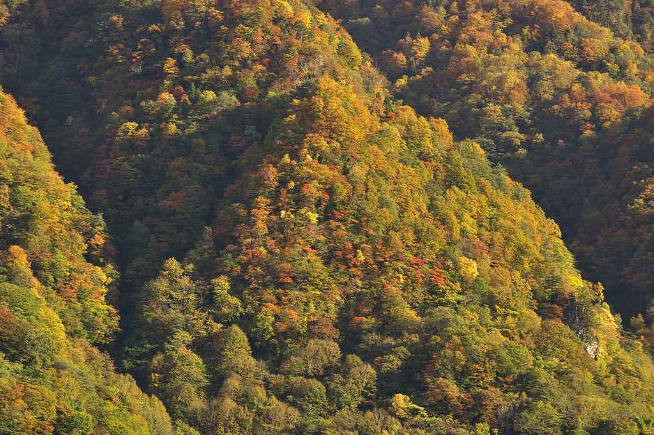 体育の日を絡めた連休は仕事を入れて、その後の好天をみはからって弥陀ヶ原の紅葉でも見に行こうと算段していたが、なかなか仕事と天候との折り合いがつかず今日になってしまった。さすがに、弥陀ヶ原の紅葉は終わっているだろう。どこまで、紅葉が降りてきているかを確かめるべく材木坂から歩くことにした。 美女平から臨む対岸の大辻山周辺は山全体が色づいている。ブナ坂では黄色から黄金色に染まるブナやモミジに目を奪われる。今年は赤より黄色がうまく染まっているようだ。ナメコも順調に出始めており、人も少なくなる楽しみな時期到来といったところ。